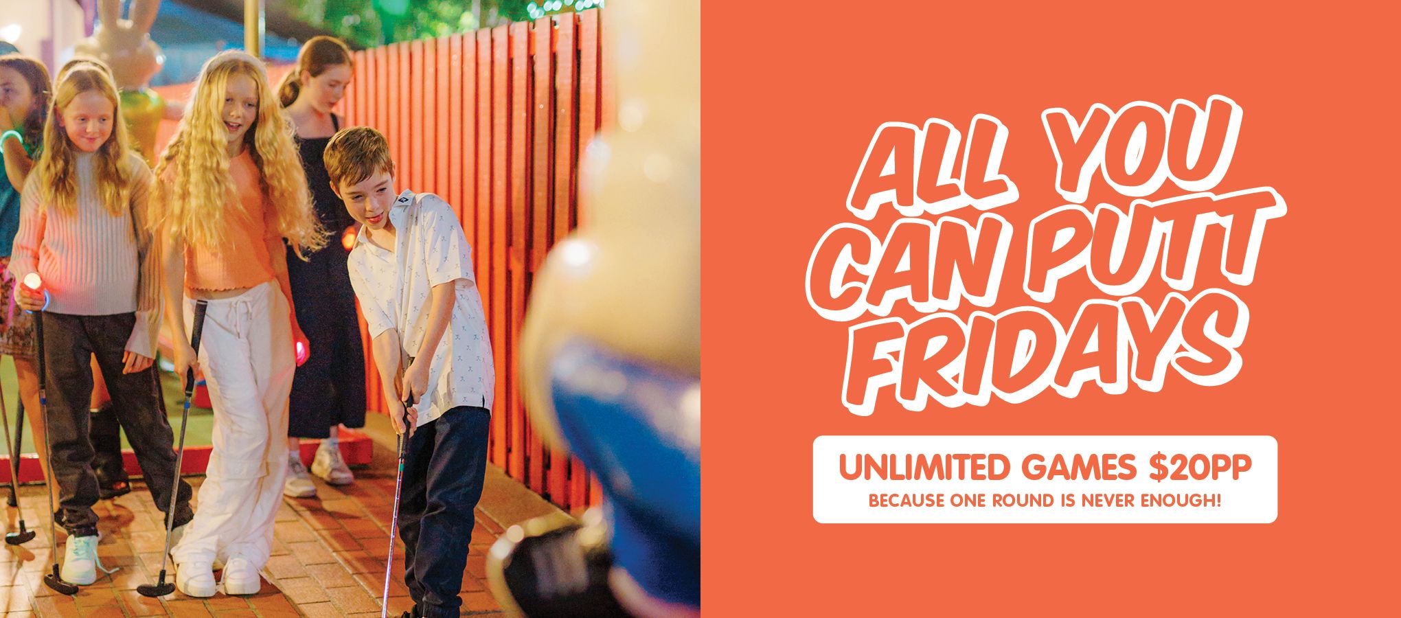 Fridays are made for fun at Putt Putt! Tee off with unlimited games across Jungle Trail, Fun Run & Waterways from 9am to 10pm.