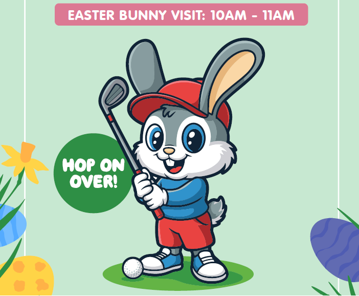 Join us on Saturday 4th April from 10:00am – 11:00am for a special visit from the Easter Bunny! Bring the kids down for a photo, a cuddle and a little treat before you tee off.